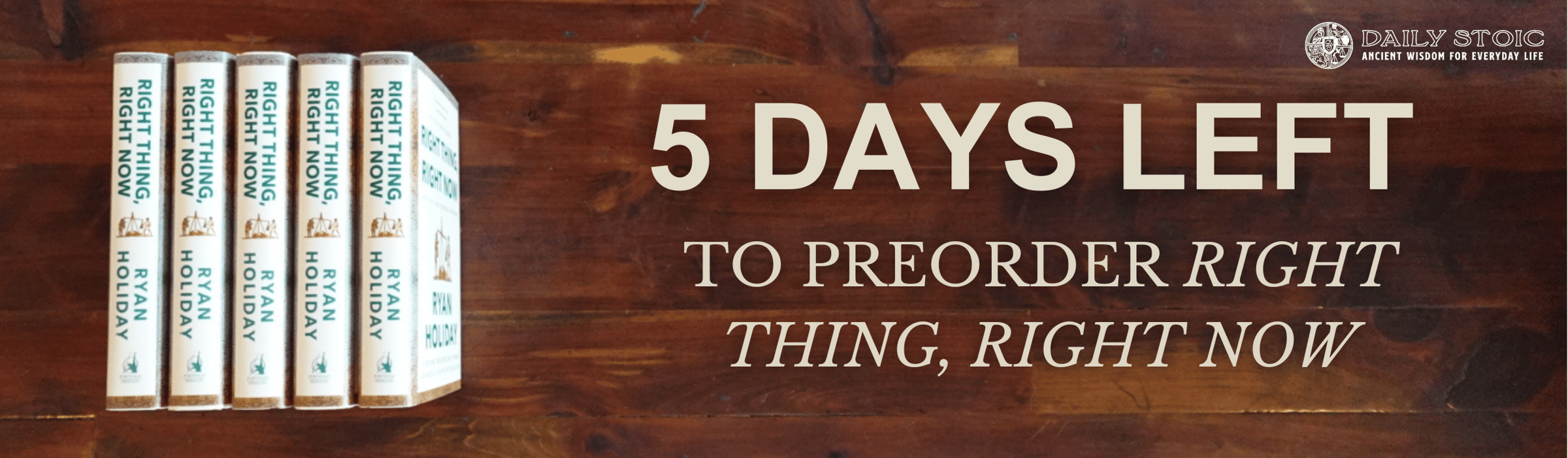 | We don't know what Antoninus said to the customs officer in Tusculum, but we know it was something that stuck with Marcus Aurelius. Can we guess that it was something kind? Something patient? Something decent? From Antoninus, we should expect nothing less. Why else would Marcus have noted it in Meditations as an example of something he admired. It wouldn't have been Antoninus losing his temper at someone, acting like some Karen who had been wronged. No, it was probably something more like the story we know about Cato, who traveling ahead of his baggage train was received rudely by the town who did not recognize the powerful dignitary in front of them. Cato shrugged the slight off and went about his business and when the town's mayor came later to apologize, Cato smiled and reminded him to treat strangers better. Not all your visitors will be Cato's, he said. In Right Thing, Right Now (which is available for preorder…right now), there is a story in the "Be Decent" chapter about the famed lawyer Clarence Darrow. He and his son had gotten terrible service in the dining car of a railroad that Darrow had once represented. "Will you report him to the Chicago and North Western when you get back?" his son asked about the waiter. "No, no, son," his father said, brushing off the slight. "Never hurt a man who is working for his living." How we treat the little guy says a lot about us. How we treat the gate agent at the airline. How we treat the customer service representative. How we treat the waiter and the barista. This says a lot about us. Even when, perhaps especially when, they aren't treating us well. Can we control our emotions? Can we contain our frustration? Can we remember that they are almost certainly having a hard time too? That no amount of yelling at someone making an hourly wage will make a plane appear or fix a stupid corporate policy? We all have bad days…which means other people have bad days, too. We should strive to be patient. We should strive to understand. We should try to be Cato's and Antoninus' and Darrow's—be the bigger person, be worthy of the wealth or responsibility or power we have. We're not better than anyone, but we can try to be the bigger person. That's what justice is, after all. It's about how we treat others and the standards we hold ourselves to. Even if no one is watching…even if "this call is being recorded for quality assurance purposes." This idea of lowercase justice being just as valuable as the Justice System is one of the main themes of Ryan Holiday's newest book Right Thing, Right Now… The book is not a series of political statements or admonishments about all that is wrong with the world, but a book full of practical strategies about how to be a bigger person and respond to others with patience and kindness. How to treat the little guy with decency and respect. How to stand up for what you believe in. How to be your own referee in the game of life. If you've gotten anything out of these emails over the years, it would mean a lot if you supported this book. Preorders make a huge difference for authors (and bookstores) when trying to get a book off the ground. Because we'd like to encourage you to do so, we have some exciting preorder bonuses like a signed page from the original manuscript (full of Ryan's handwritten changes) and a special welcome video from Ryan explaining how writing the book changed him as a writer, plus a preview of his next book on wisdom. We also worked with the publisher to do an initial run of signed, numbered first-editions—we're getting close to running out of these, so grab yours while supplies last! We also have unsigned copies of the book cheaper than Amazon, too. Head here to preorder Right Thing, Right Now and learn how to receive your bonuses TODAY! *** |